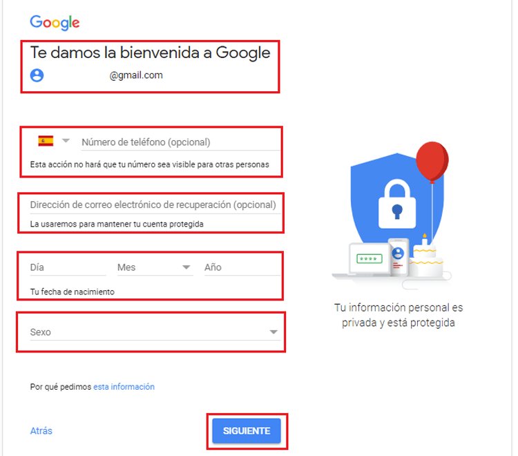 - Así como los datos personales que se te solicita para poder crearla.